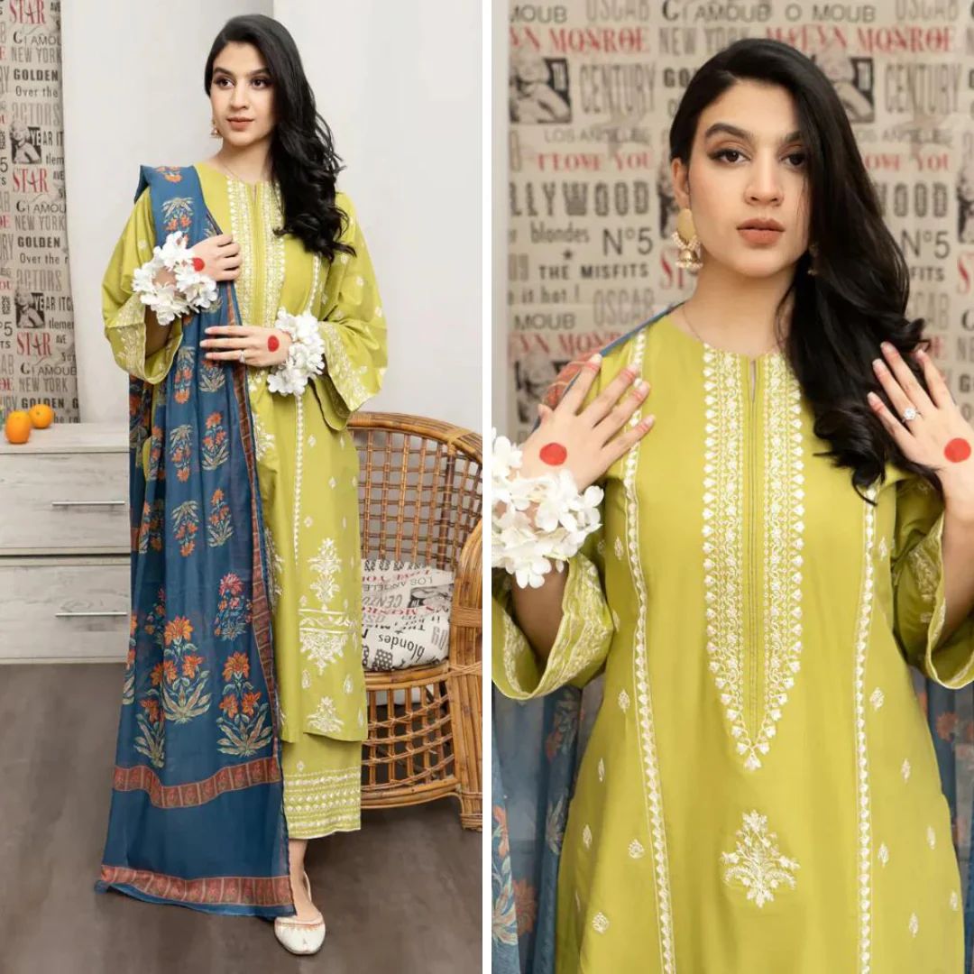 3. Dupatta: The set is completed with an exquisite wool shawl, ideal for colder seasons. The soft and warm shawl adds an extra layer of luxury, while its fine texture enhances the overall ensemble.