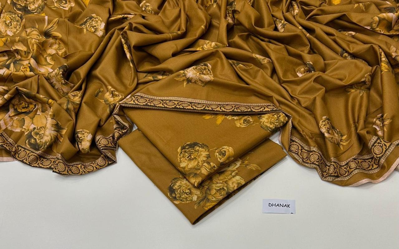 Dhanak with Dhanak dupatta blends soft warmth and timeless elegance. Its lightweight, textured fabric drapes beautifully, offering comfort for everyday wear and grace for special occasions. Paired with the matching dupatta, the look becomes effortlessly refined, showcasing subtle patterns, rich hues, and a classic charm perfect for any season.