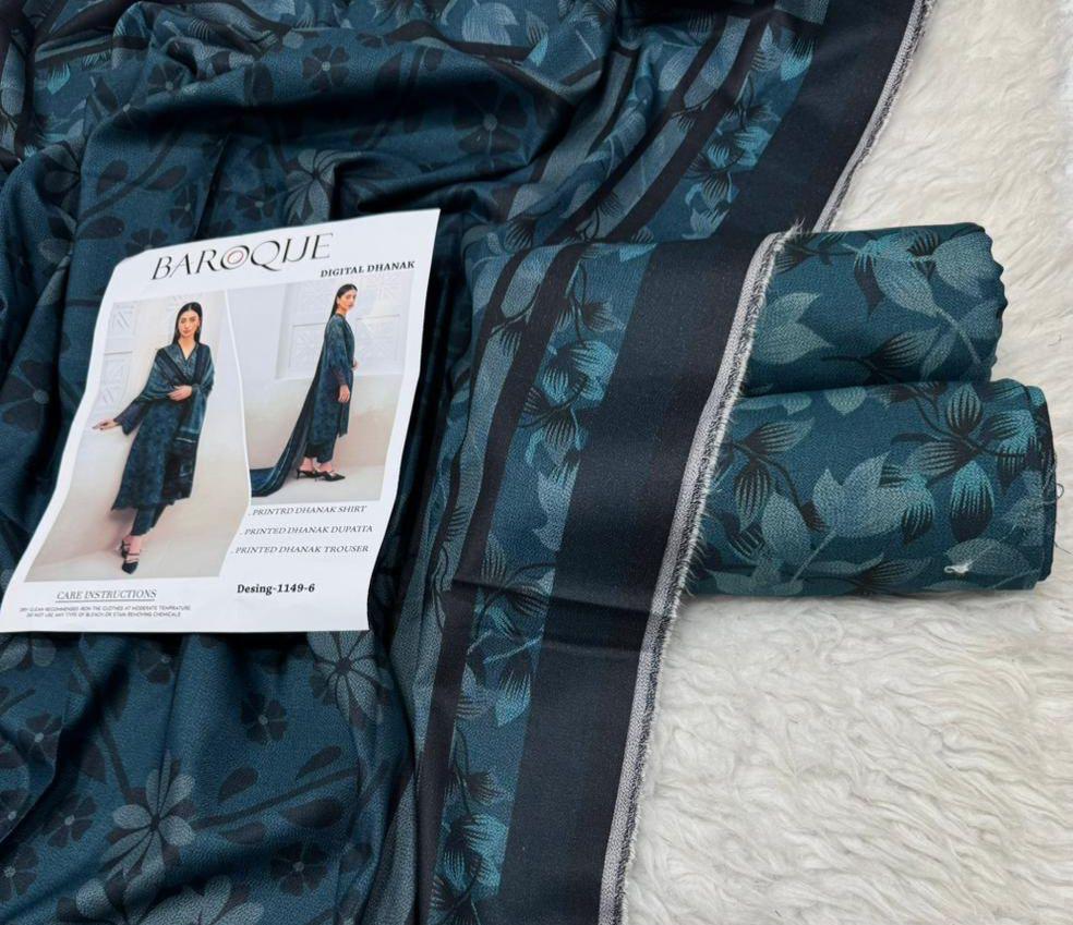 Dhanak with Dhanak dupatta blends soft warmth and timeless elegance. Its lightweight, textured fabric drapes beautifully, offering comfort for everyday wear and grace for special occasions. Paired with the matching dupatta, the look becomes effortlessly refined, showcasing subtle patterns, rich hues, and a classic charm perfect for any season.
