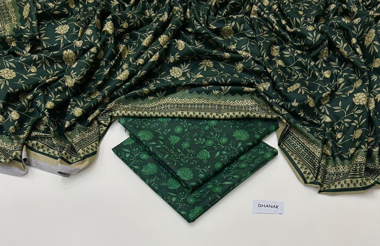 Dhanak with Dhanak dupatta blends soft warmth and timeless elegance. Its lightweight, textured fabric drapes beautifully, offering comfort for everyday wear and grace for special occasions. Paired with the matching dupatta, the look becomes effortlessly refined, showcasing subtle patterns, rich hues, and a classic charm perfect for any season.