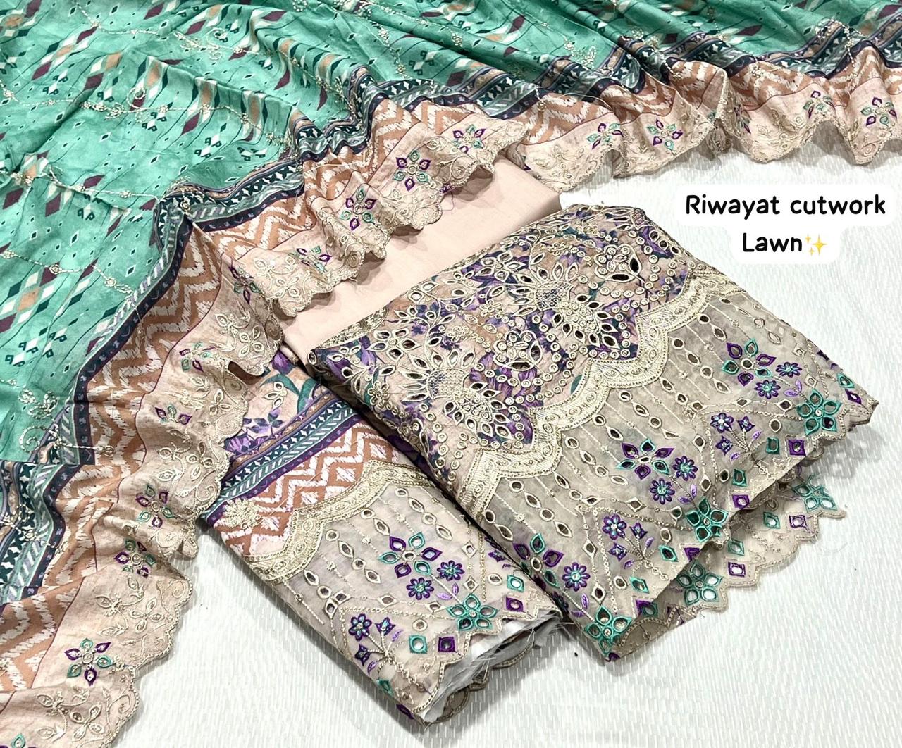 Lawn Chicken Kari 3 Piece Suit features a graceful blend of traditional chicken kari embroidery on soft, breathable lawn fabric. The set includes a beautifully embroidered shirt, matching trousers, and a coordinated dupatta—perfect for elegant summer wear with timeless charm.