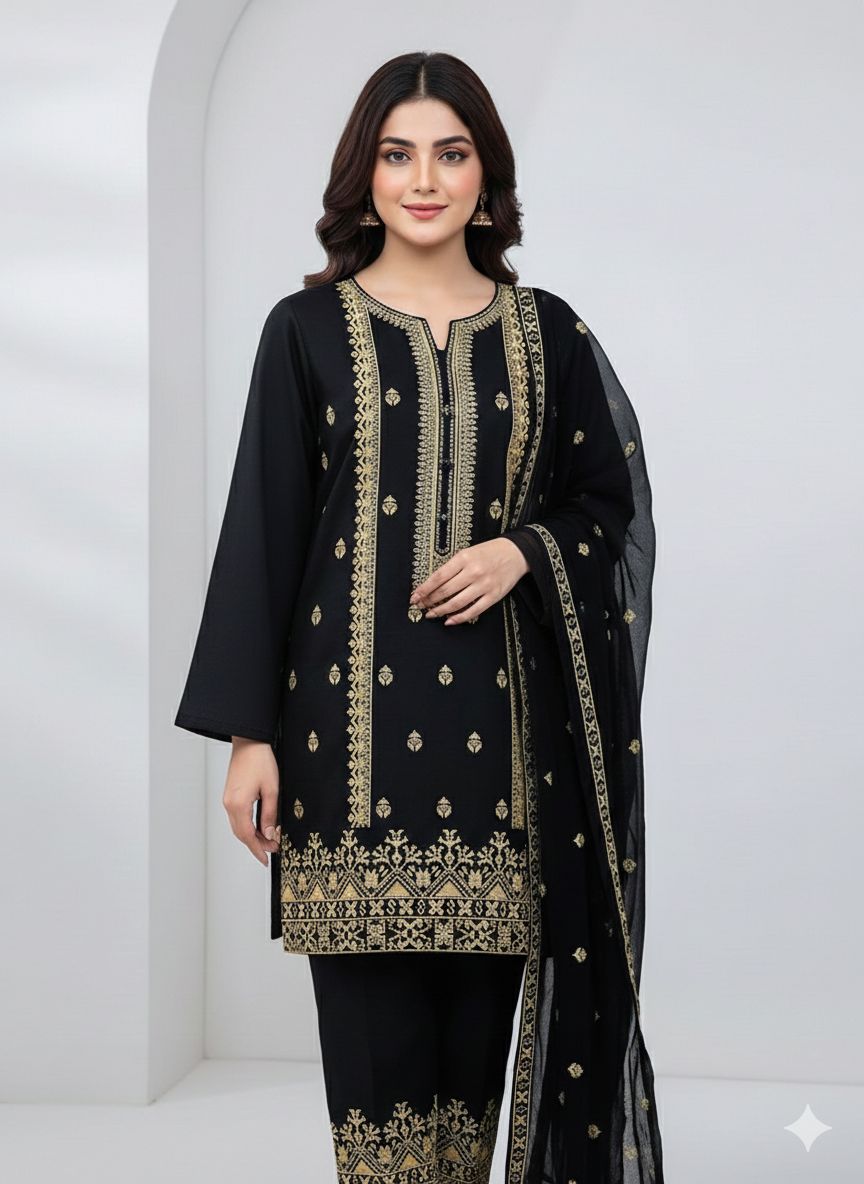 black - Embroidered Lawn 3 Piece