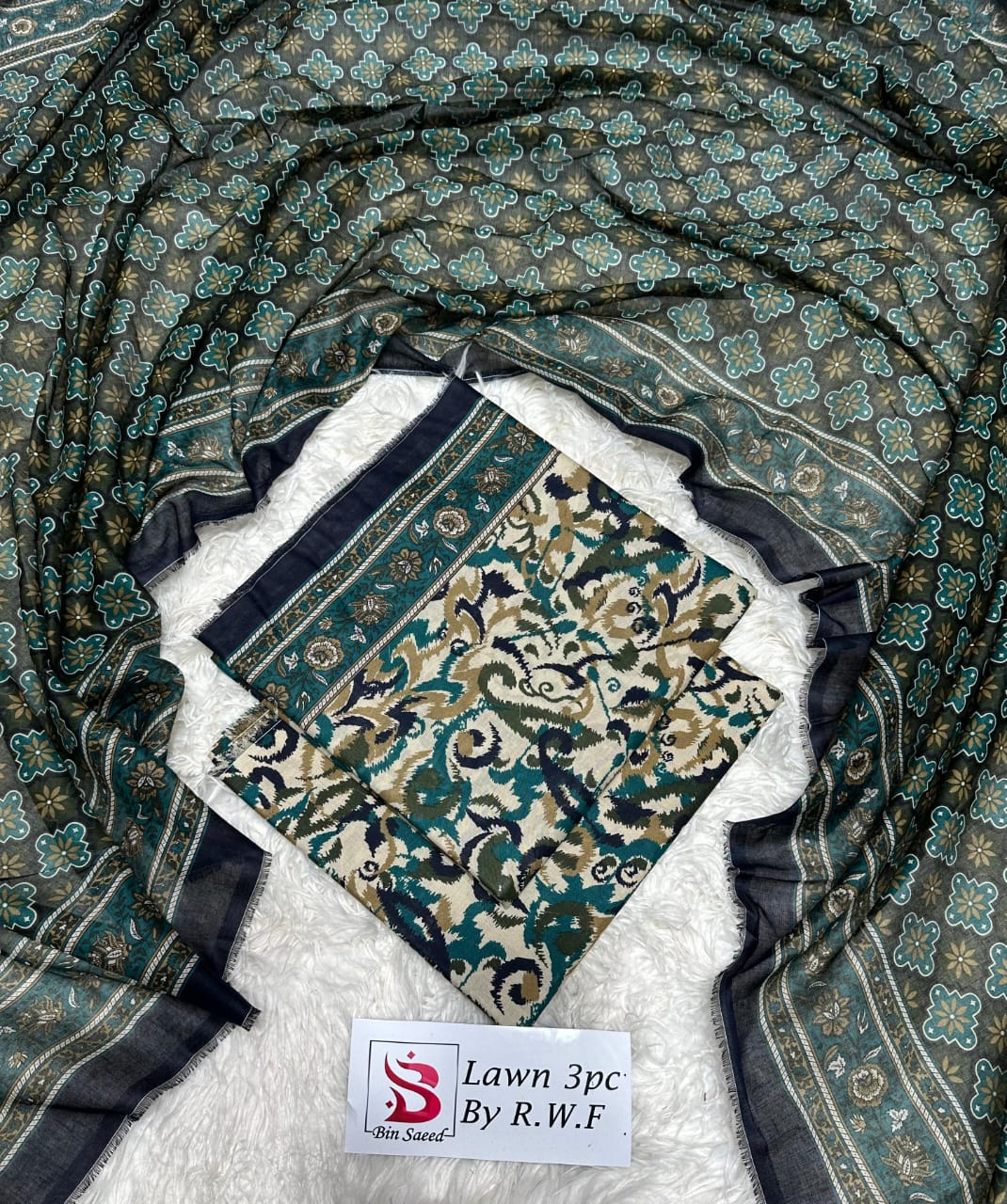 Elevate your summer wardrobe with this Printed Lawn 3 Piece Suit, featuring a breathable lawn shirt, matching trousers, and a coordinating dupatta. Adorned with vibrant prints and fine detailing, it offers lightweight comfort, graceful drape, and effortless elegance for daily wear and festive occasions in warm weather styling versatility assured.