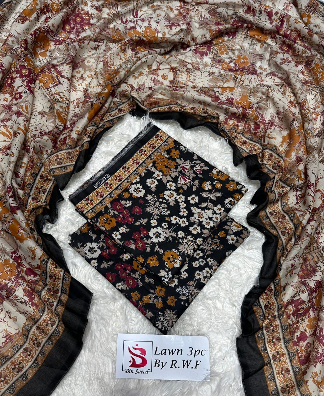 Elevate your summer wardrobe with this Printed Lawn 3 Piece Suit, featuring a breathable lawn shirt, matching trousers, and a coordinating dupatta. Adorned with vibrant prints and fine detailing, it offers lightweight comfort, graceful drape, and effortless elegance for daily wear and festive occasions in warm weather styling versatility assured.