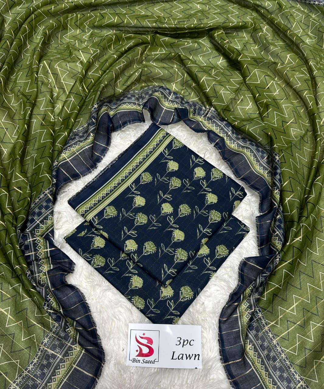 Elevate your summer wardrobe with this Printed Lawn 3 Piece Suit, featuring a breathable lawn shirt, matching trousers, and a coordinating dupatta. Adorned with vibrant prints and fine detailing, it offers lightweight comfort, graceful drape, and effortless elegance for daily wear and festive occasions in warm weather styling versatility assured.