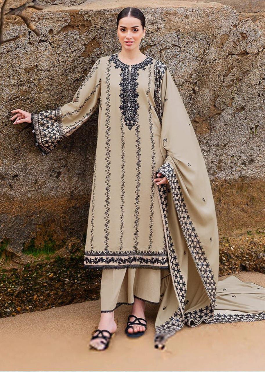 Elegant embroidered lawn 3 piece suit featuring a delicately detailed shirt, matching dyed trousers, and a graceful dupatta. Crafted from breathable lawn fabric, it offers comfort and style for summer wear, festive gatherings, and everyday elegance with refined craftsmanship and timeless appeal in vibrant colors and exquisite traditional design details.