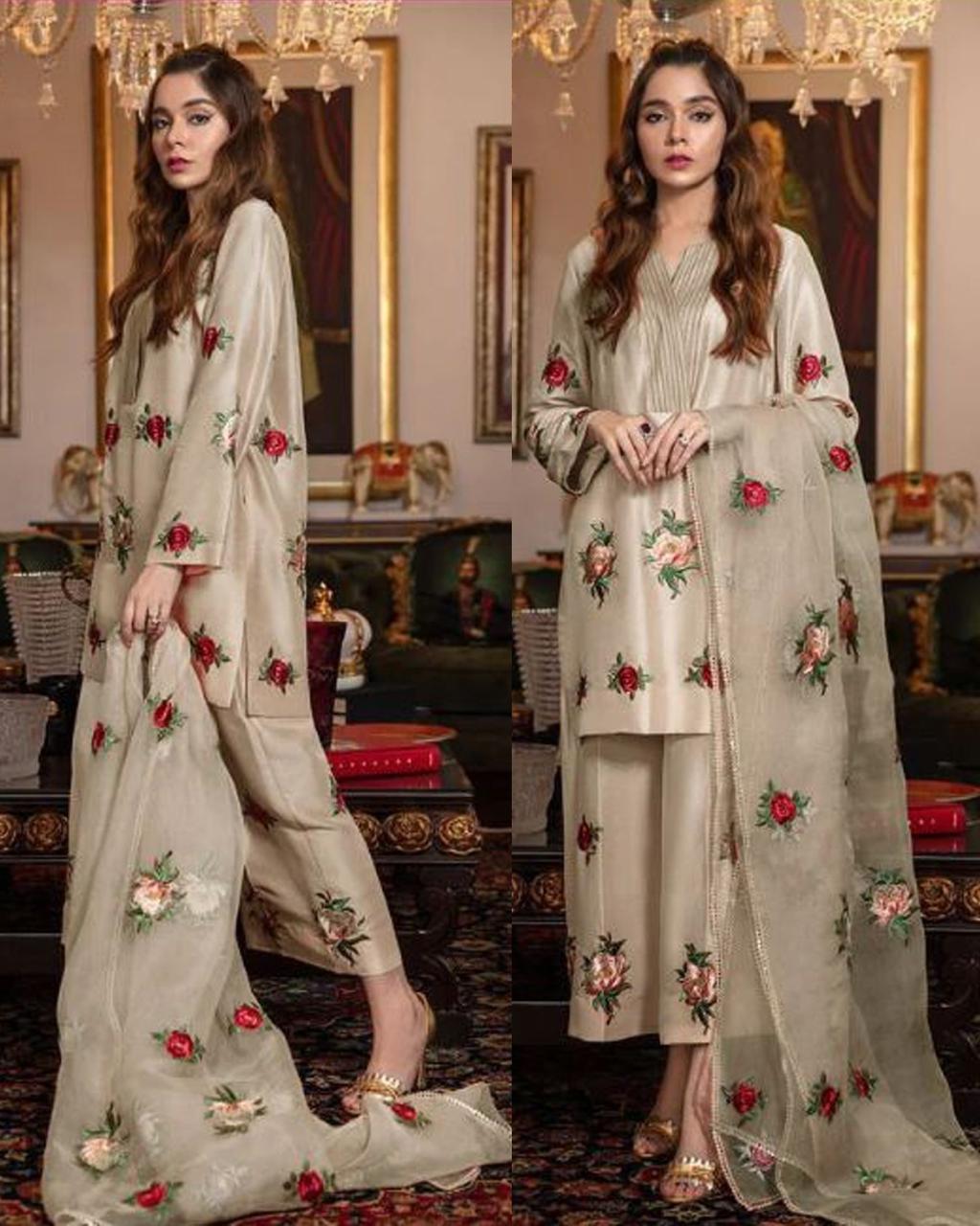 Silk Embroidred 3-piece Light Beige